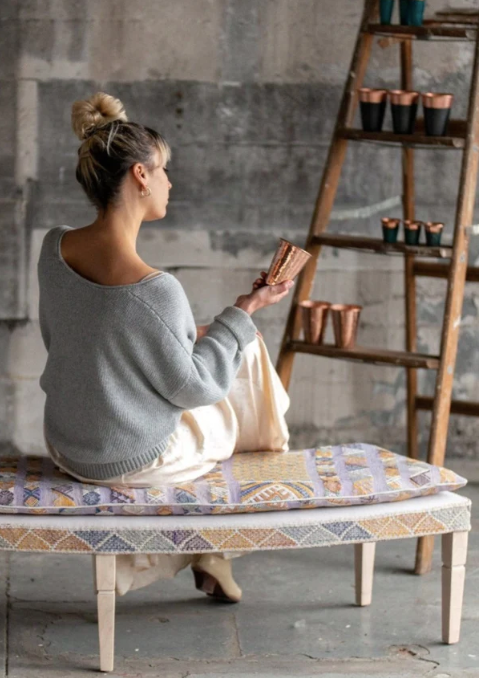 We upcycle furniture and upholster it with timeless heirloom Moroccan textiles. This is a zero waste process so you can feel guilt free while lounging in your one of a kind Modern Myth furniture. We work in collaboration with ADF, a locally owned female brand in Portland OR and a master at her craft. Whether you have an antique piece you’d like us to transform, or are imagining a unique chair or daybed to warm up your home, we can help make that dream into a reality. Designed by women, supporting women, fair trade, artisan made.